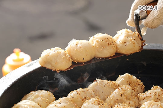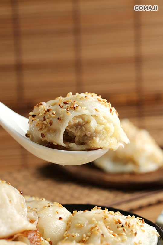 待包好的生煎包完成後準備開始下鍋,在一旁全程記錄,煎煮的時候,隨冒著泡泡滋滋作響的聲音,肉汁也從裡頭悄悄地滲出,泛著油光的色澤實在忍不住想偷夾一個來嚐嚐,只見師傅最後再撒點芝麻,讓風味更加誘人口水噴發!