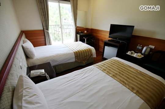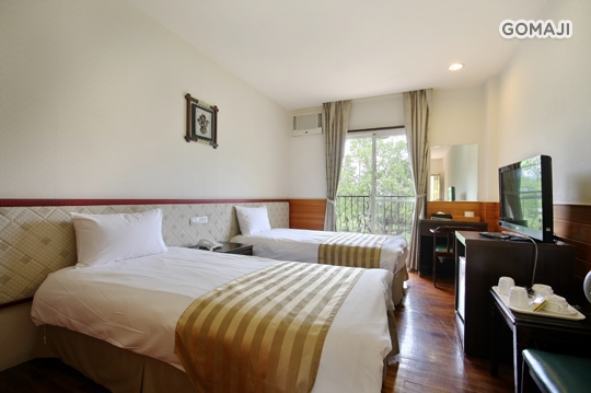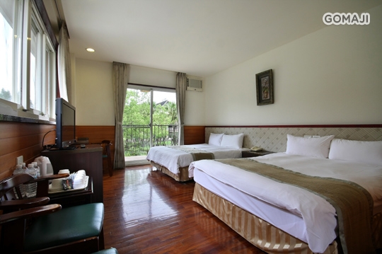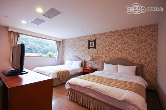 歐式房間典雅溫馨,採歐式裝修元素,視野採光極佳,每一扇窗景都是驚奇,部份房間寛敝有佈置小客廳,有別於一般飯店,可欣賞渡假村早晚不同的情景風貌。黃昏時雨景,水波潾影,建築物增溫渡假情感,如詩若夢。會館後方就是泳池,白日夜間兩樣情,讓人置身優勝美地。