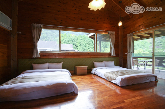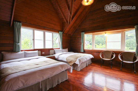 樸素的原木香氣釋放渡假氣息,房內以進口天然木材建造而成,樓層隔間採用水泥隔離,以免受鄰近隔間喧嘩打擾。三五好友齊聚可談天說地,欣賞大自然美景,房間特色為原木溫馨感覺,適合家庭前來渡假。