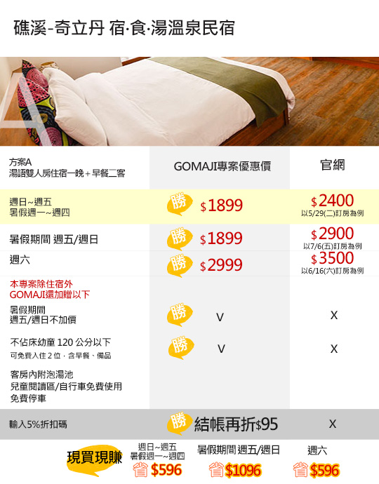 【礁溪-奇立丹 宿‧食‧湯溫泉民宿】感謝麻吉們熱烈搶購,已全數賣光光。