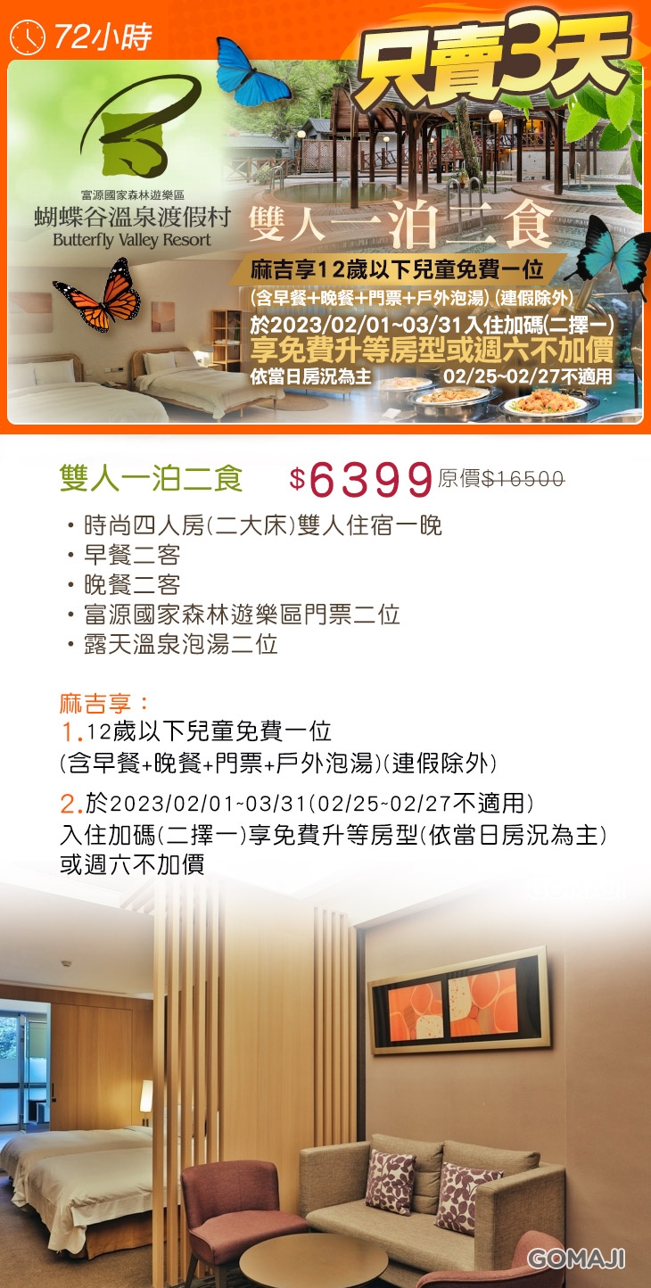 【花蓮-蝴蝶谷溫泉渡假村】感謝麻吉們熱烈搶購,已全數賣光光。