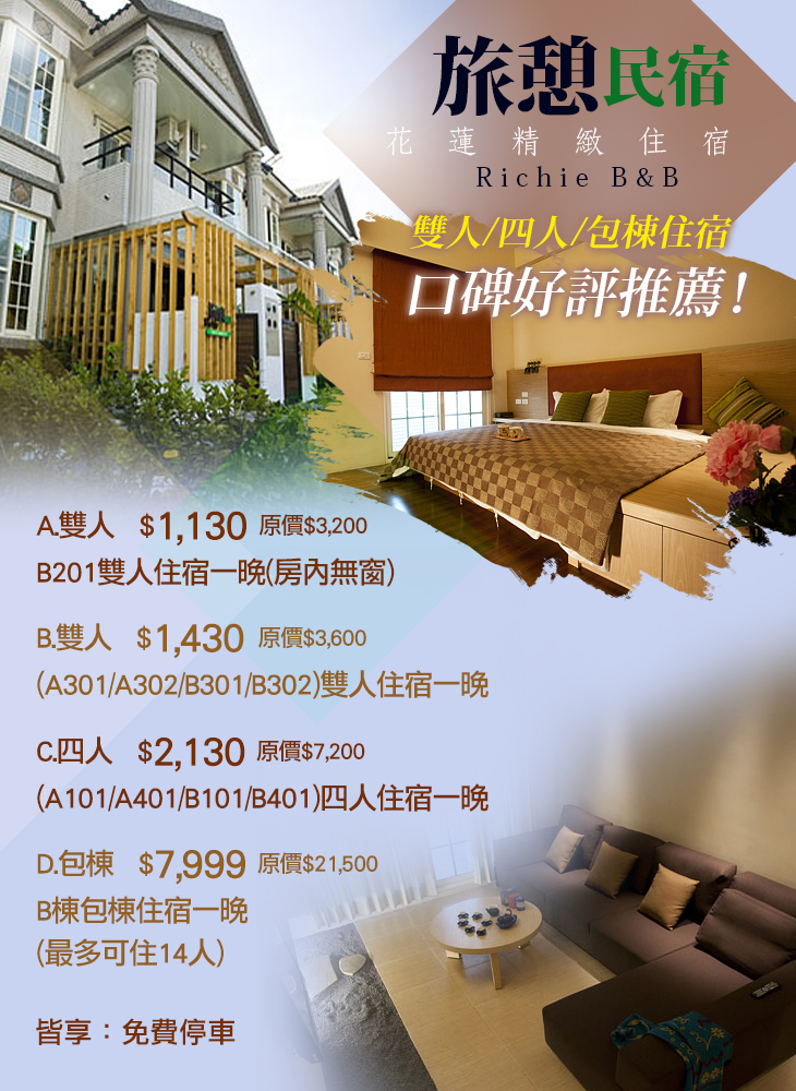 然後背起行囊,讓我和你一起展開步伐探索冒險,悠活,渡假─ 花蓮旅憩精緻民宿。
