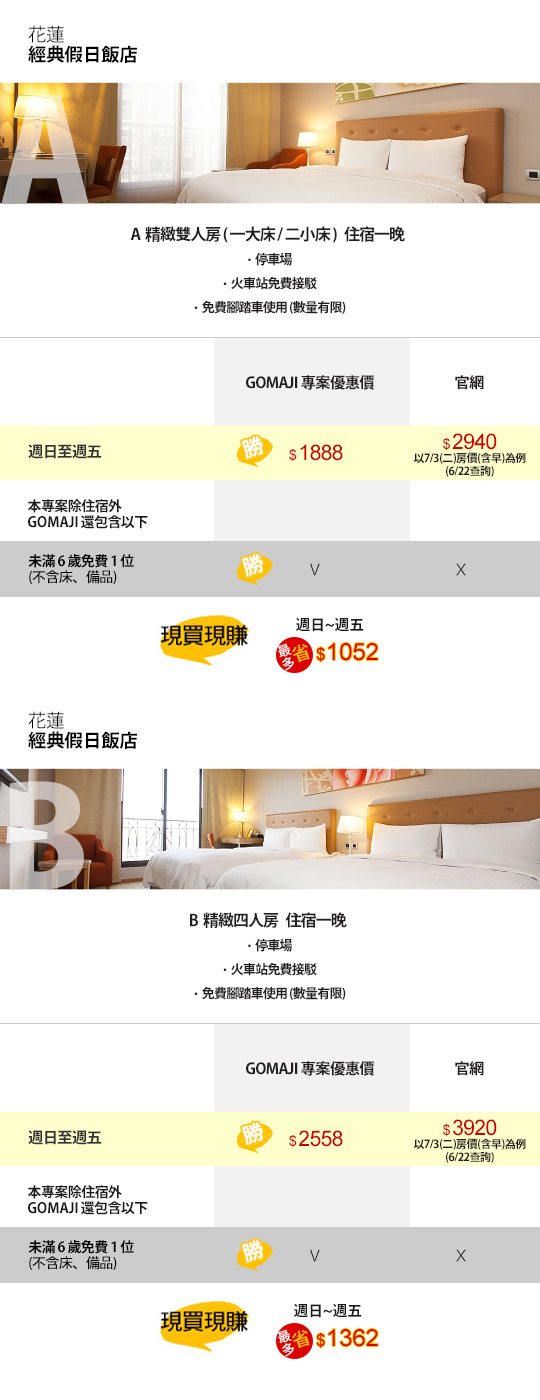 【花蓮-經典假日飯店】感謝麻吉們熱烈搶購,已全數賣光光。