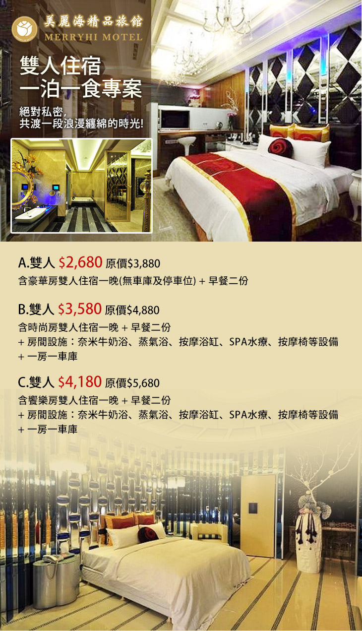 【新北市-美麗海精品汽車旅館】感謝麻吉們熱烈搶購,已全數賣光光。