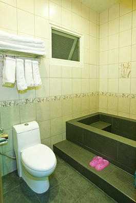 ▼乾淨清爽的衛浴設備,還有可以泡澡的浪漫小浴缸,讓你盡情享受度假的愜意和自在!