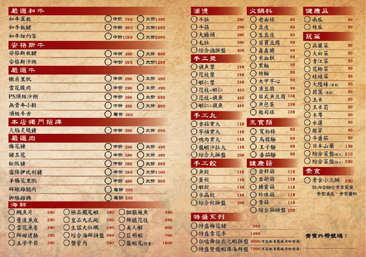 岩漿火鍋 MENU(點圖可放大)