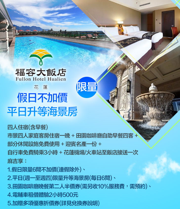 【福容大飯店 花蓮】感謝麻吉們熱烈搶購,已全數賣光光。