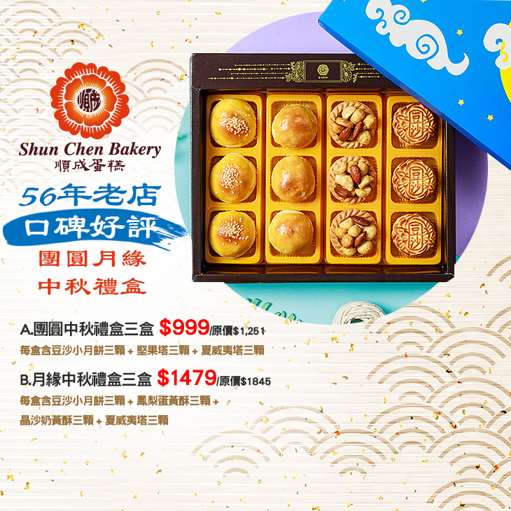 1965年,台北市忠孝東路還只是一片稻田時,「順成蛋糕」紅色的招牌就已經掛在街頭了。迄今,車水馬龍的台北,人來人往的街頭,「順成蛋糕」老字號品牌,依然佇立在民眾心中!本次推出中秋禮盒,包裝精美、美味度百分百,絕對讓您送禮送得大方又體面!