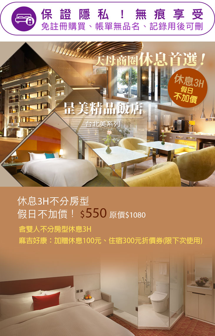 【台北美系列飯店-昰美精品飯店】感謝麻吉們熱烈搶購,已全數賣光光。