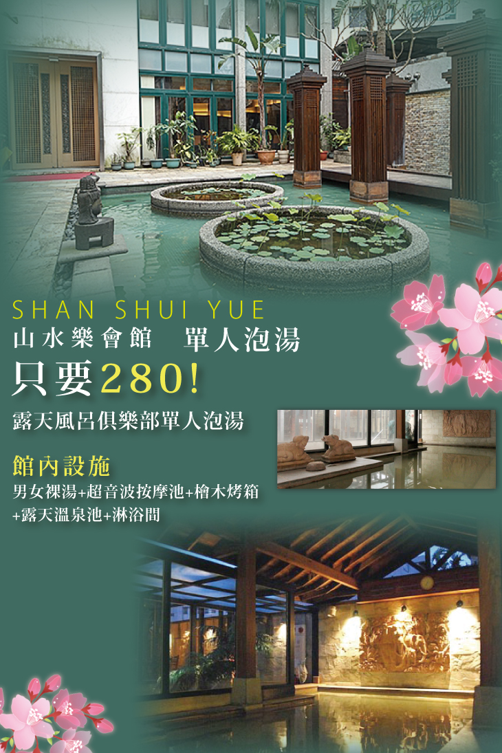 陽明山下的庭園式露天風呂,耗資鉅額所打造的硬體設備,無論是男女裸湯、超音波按摩池、露天溫泉池等全都一應俱全,給您宛如頂級俱樂般的奢華享受~浸泡於純淨溫熱的湯水之中,暫忘世俗的煩惱,將平時累積已久的壓力都緩緩釋放,滋潤每一吋肌膚,在寒冷的冬季裡找回火熱般的悸動。