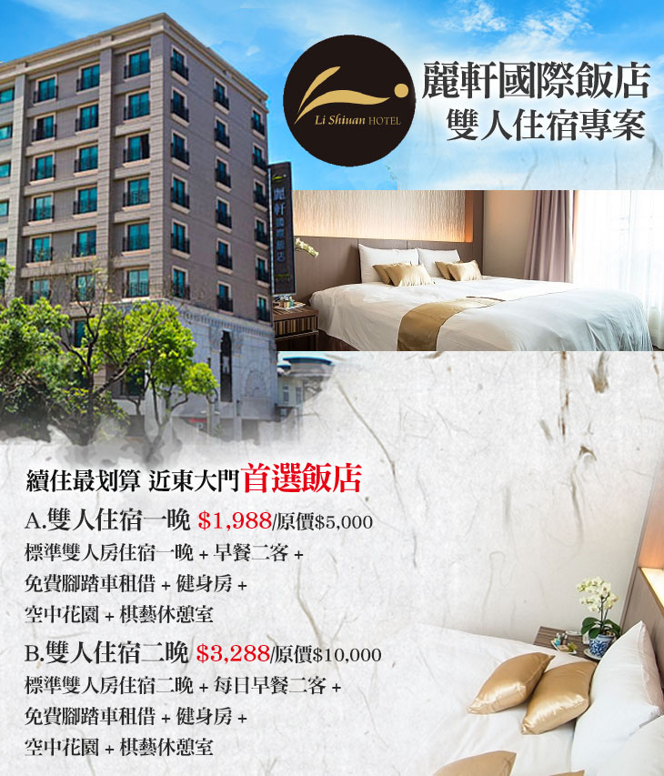 【花蓮-麗軒國際飯店】感謝麻吉們熱烈搶購,已全數賣光光。