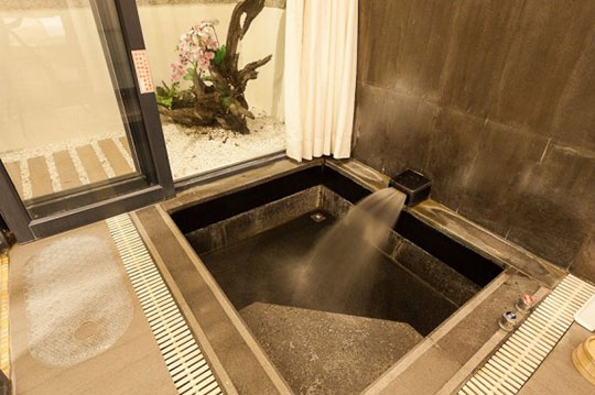 養生溫泉是屬於變質岩的弱鹼碳酸泉,PH值在7-8左右,泉水溫度約39-45度,無臭、無色澄明,附著白色湯花,含大量礦物質,有「美人湯」之稱。