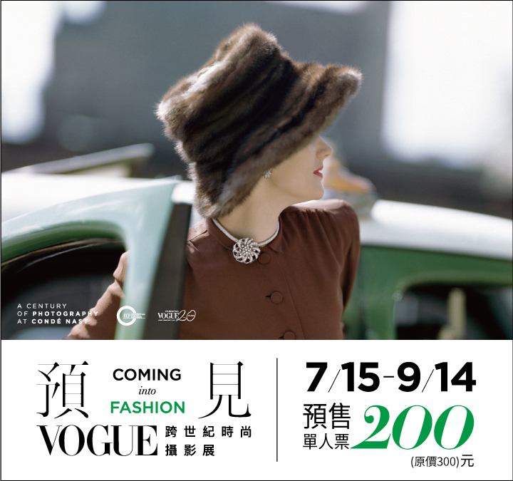 適逢VOGUE TAIWAN 20週年,特別策劃【預見Coming into Fashion,VOGUE跨世紀時尚攝影展】,本次展覽論規模,可謂史無前例。我們集結康泰納仕集團於紐約、巴黎、米蘭及倫敦資料館館藏的原稿,為各位介紹幾位時尚攝影大師早期的作品,匯集90位聞名於世的重量級攝影大師的作品,還有台灣VOGUE 20年來的重要人物影像,以一個打破疆域與文化的時尚任意門,讓你可以自由的穿梭,欣賞每一個作品!