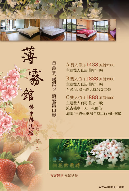 【苗栗-薄霧館樓中樓民宿】感謝麻吉們熱烈搶購,已全數賣光光。