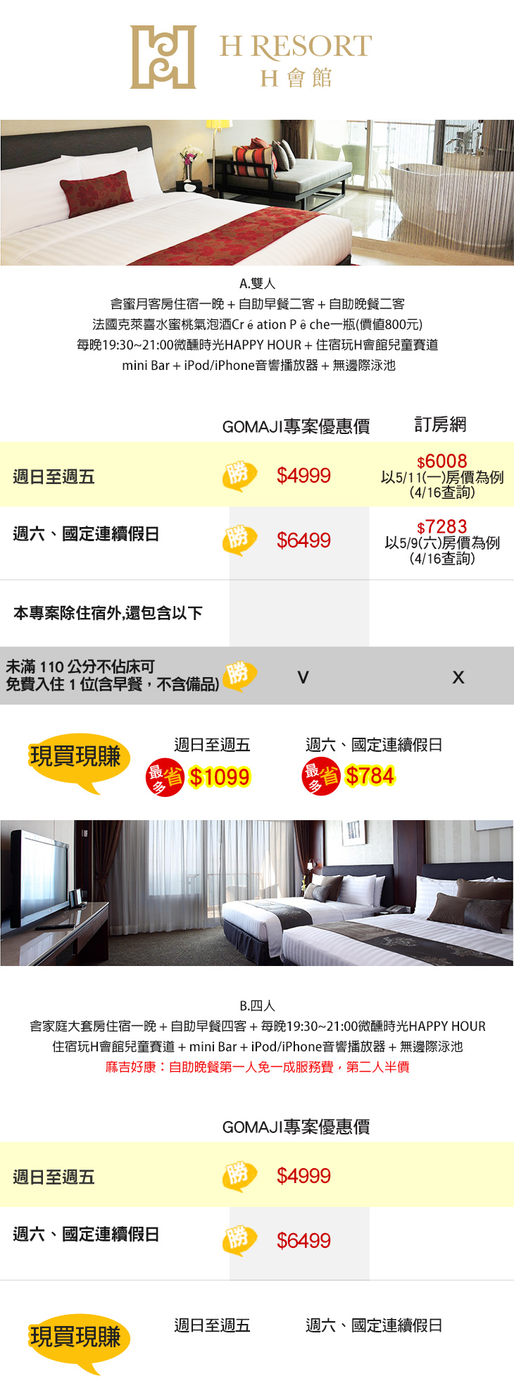 ★ 凡入住即享住宿玩H會館兒童賽道 + mini Bar + iPod/iPhone音響播放器 + 無邊際泳池!