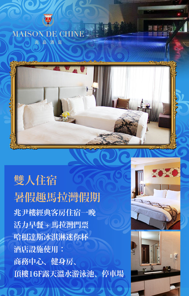 【台中兆品酒店】設有一館「品臻樓」與二樓「兆尹樓」,房內充滿溫馨氣息,卻又不失都會的時尚風格。除了擁有優質的住宿環境外,更於頂樓設有雙水道游泳池、健身房、SPA水療區以及戶外座椅,眼前還有唯美的景觀造景,給您全方位的假期享受!