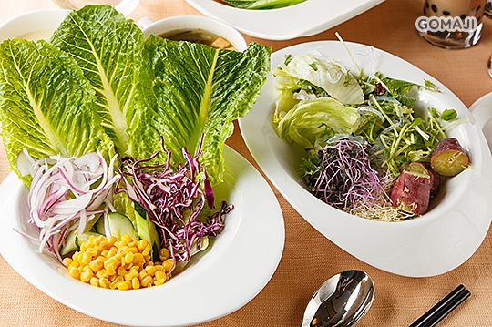 ▼ 新鮮沙拉吧,還有各種醬汁提供,健康美味一把抓!