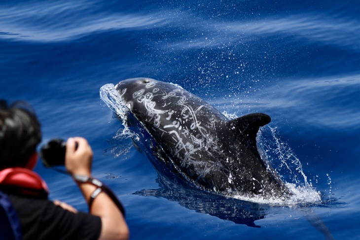 除了船邊的海豚,也別忘了抬頭看看遠處,幸運的話還可看到大型的抹香鯨浮出水面的珍貴畫面!還有弗氏海豚、領航鯨、花紋海豚等,快來數數你看到了幾種海豚。