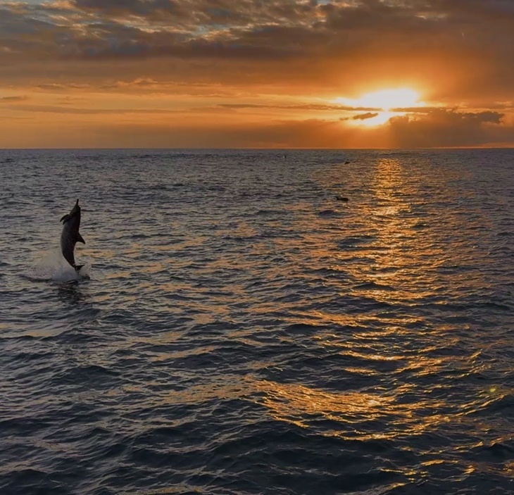 旋轉、跳躍、不停歇~這可不是天后才辦得到喔!跟著賞鯨船可看到成群結伴的海豚互相嬉戲,一跳一躍劃出水面,激起美麗的浪花,讓人目不轉睛。