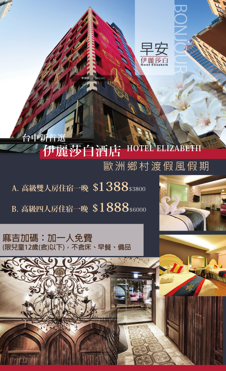 【台中-伊麗莎白酒店】感謝麻吉們熱烈搶購,已全數賣光光。