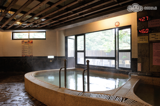 ▼男女獨立的浴池,空間構造皆相似,除了室內的湯池以外,還有室外的露天風呂池,非常適合這個時節,一邊享湯、一邊欣賞的外頭的翠綠青蔥,微風拂來,好不自在。