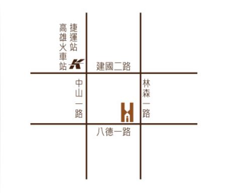 ▲中山高速公路-九如系統交流道-右轉九如路直行-民族路口左轉-民族路往南直行-八德路口右轉-八德路-林森路交叉口即達。