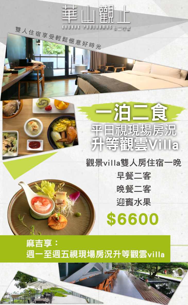 麻吉享:週一至週五視現場房況升等觀雲villa