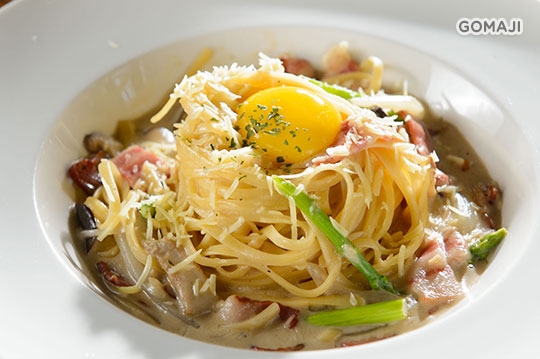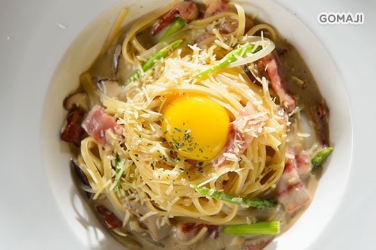 Q 彈十足的義大利麵,每一口散發著自然香濃的奶香,加上鹹香不膩的培根肉,麵體彈牙爽口,呼嚕嚕地一股腦吃下肚,份量十足,一點也不讓人覺得少!