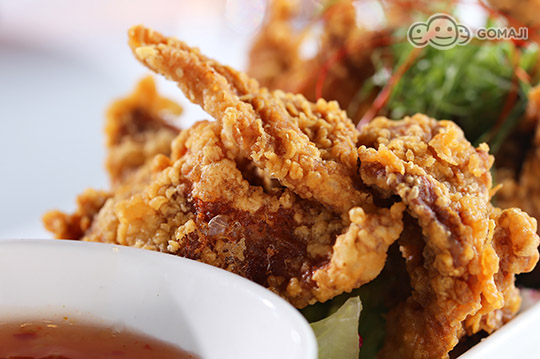 將雞肉以清酒、味醂、白胡椒醃漬後直接裹粉酥炸,金黃油香的燙口滋味,在口中喀滋作響,鮮嫩的雞肉迸發出誘人精華湯汁,值得您細細品嘗。