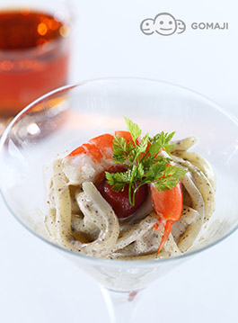 使用冰鎮過後的烏龍麵沁涼彈牙又充滿咬勁,拌入特製的胡麻醬汁,口中瞬間充滿濃郁胡麻芬芳的香氣,涼爽卻濃郁口感十分適合夏日享用。