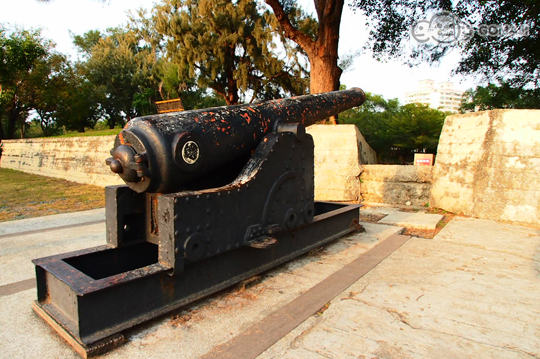聽到大炮,很多人的眼睛都為之一亮。億載金城是台灣第一座西式砲台,也是第一座配有阿姆斯壯大砲的砲台,是台灣砲史上的重要里程碑。城外題字「億載金城」,內題「萬流砥柱」皆為沈葆楨的親筆題字,現在所建的砲台幾乎都是整建時仿製的,經日據時代遺失,目前僅剩一尊小砲為真砲。整修後,台南市政府將一部份營房與彈藥庫的位置挖掘出來,並以玻璃罩保護,讓遊客更親身感受當時的情境。