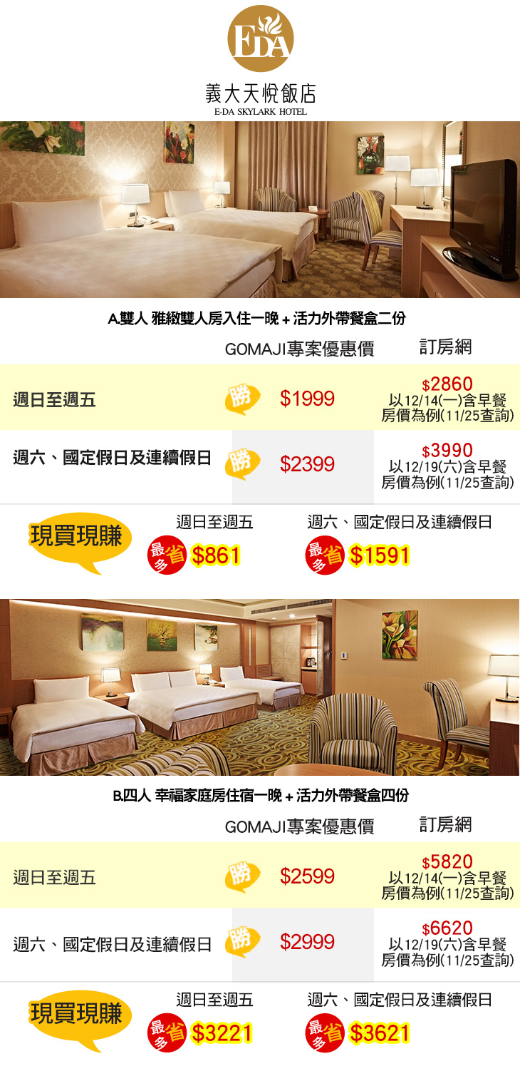 ★ 季節限定,麻吉好康優惠!【義大天悅飯店】提供最人性化的服務,讓您彷彿回到家一般溫馨!