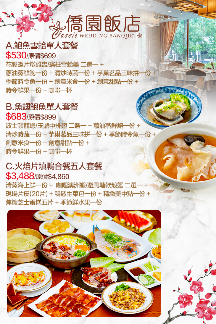 【台中僑園飯店】位於台中市七期新市政中心,深耕美食領域,已深獲各界一致口碑,提供無國界的各式美食佳餚,婚宴喜慶、聚餐宴會的最佳選擇!