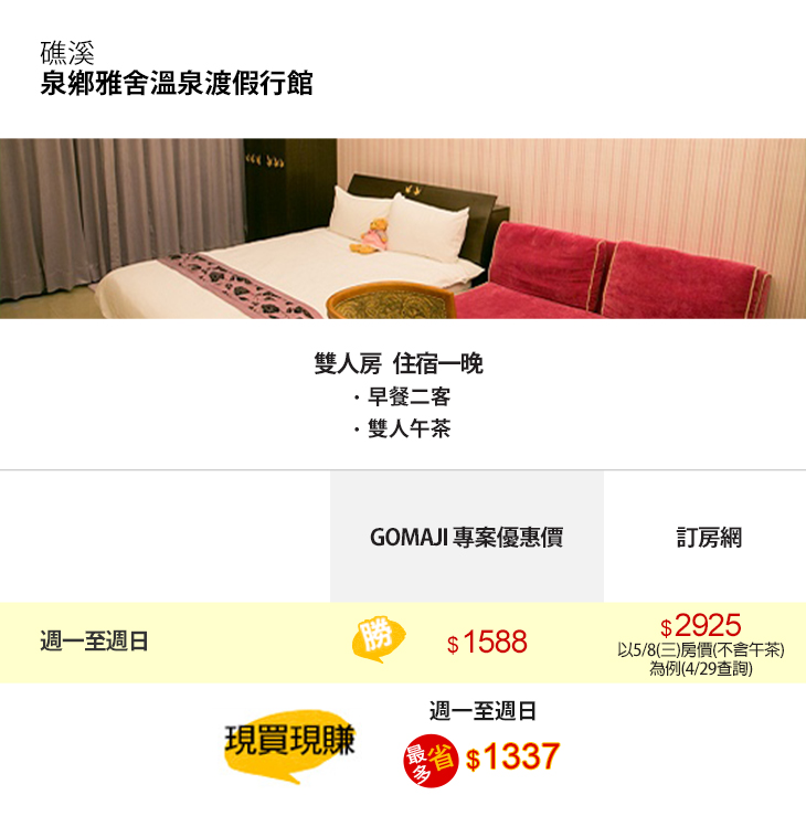 【礁溪-泉鄉雅舍溫泉渡假行館】感謝麻吉們熱烈搶購,已全數賣光光。