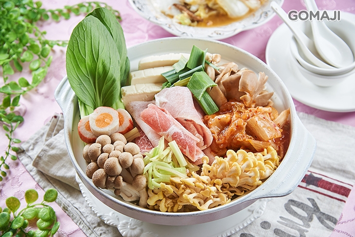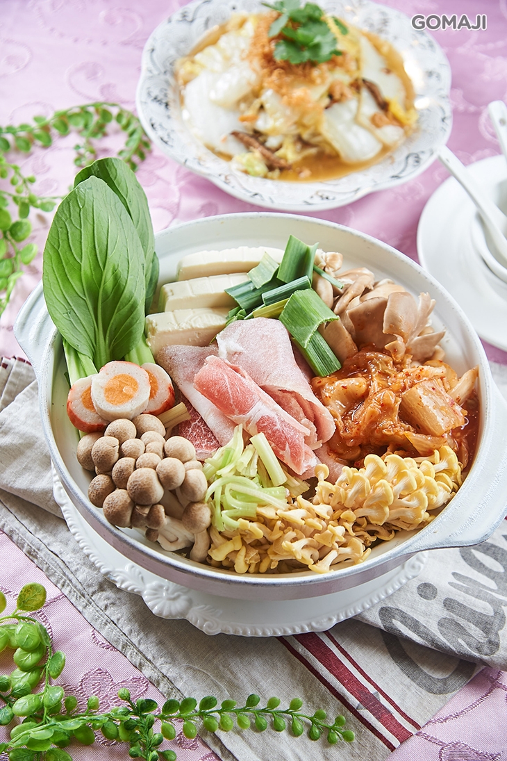 層次鮮明的韓式百菇風味鍋,用料豐富,燉煮食材精華,肉片軟嫩鮮美,溫和不上火。添加韓式泡菜入鍋,微辣中又帶點泡菜獨有的酸甜,讓涮進鍋裡的鍋物瞬間昇華,濃醇香而不膩口。
