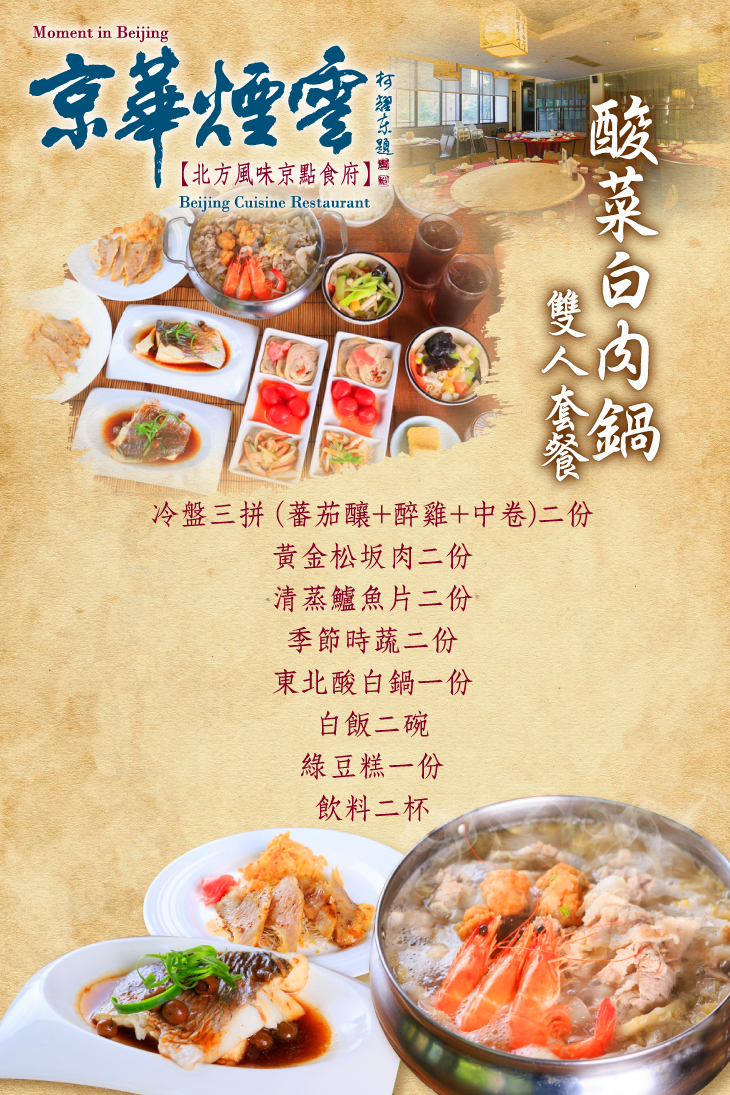 在食材的選用及料理的手藝展現上,可以體會到【京華煙雲】的專業與用心!本次推出無論四季皆暖胃又合胃的套餐組合 - 酸菜白肉鍋,美味湯底,搭配實在用料,每一口都成功擄獲您的心!