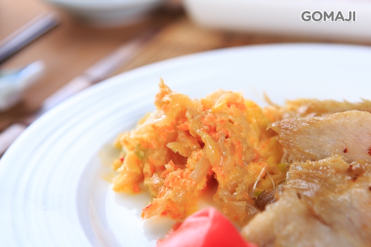 擁有黃金六兩之稱的松坂肉,主廚以嫻熟的料理手藝烹飪得軟嫩不油膩,搭配一旁特製黃金泡菜品嚐,脆口迷人,在嘴裡愈嚼愈香!將兩種不同風味的食材,透過創意,組合在一起,曼妙口感絕對顛覆您我想像!