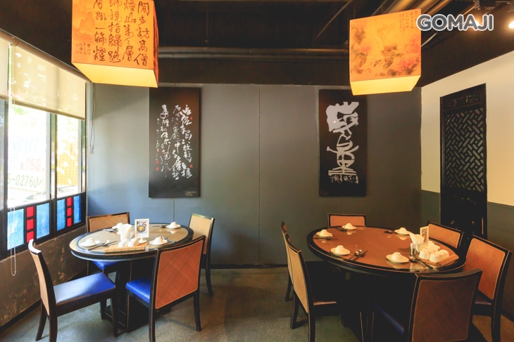 內部裝潢隨處可見由水墨大師「柯耀東」老師圖繪的燈籠,以國畫、書法家行之有力字畫燈籠做妝點,少了雕龍畫鳳餐廳匠氣,倒有幾分清代書報館氣味。