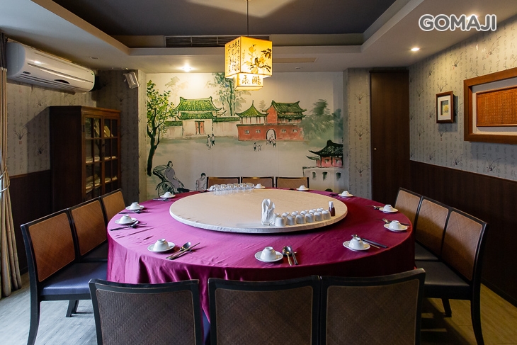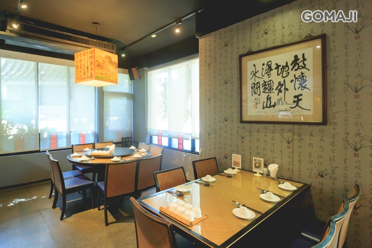 搭配仿古傢俬、老照片和手工製老繡片等,古樸卻不失細緻華麗氣息。 以畫屏或竹屏來彈性隔間的包廂,聚餐筵席都可以適切地不受干擾,整片窗開向園道,讓賓客自在地瀏覽盎然綠意,餐宴之間,人文氣質自然蘊生。