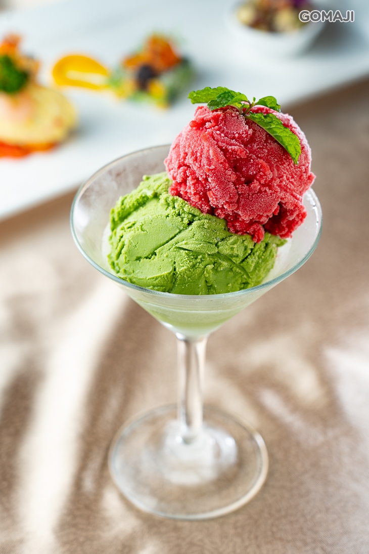 甜點師每日手工製作的精緻甜品,各個模樣精美、小巧迷人,盛裝上盤,雪白的器皿中有了甜點繽紛的點綴顯得貴氣萬分,入口細嚐,甜而不膩的細緻美味讓著迷不已~在大快朵頤一番後,絕對不能忘記來一份手作甜點,為美好的用餐畫下美麗的句點。