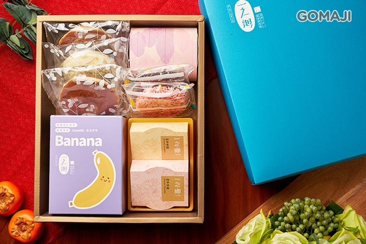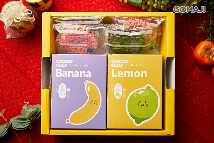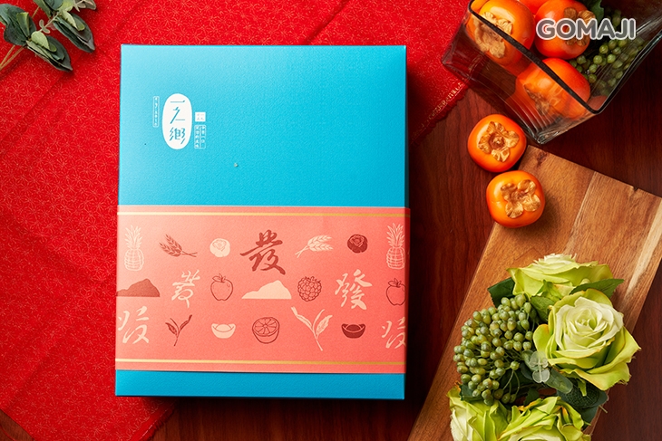 水藍色的盈滿禮盒,以小農香蕉蜂蜜蛋糕為主,搭配喜氣洋洋的玉祿、小團員,還有酸甜果香怡人萬分的四季果露,以及古早味零嘴米香,和小朋友最愛的蜂蜜QQ軟糖,豐富滿滿的內容,要祝您新的一年能夠收穫滿溢,如同「盈滿」禮盒一般,豐收又充實!