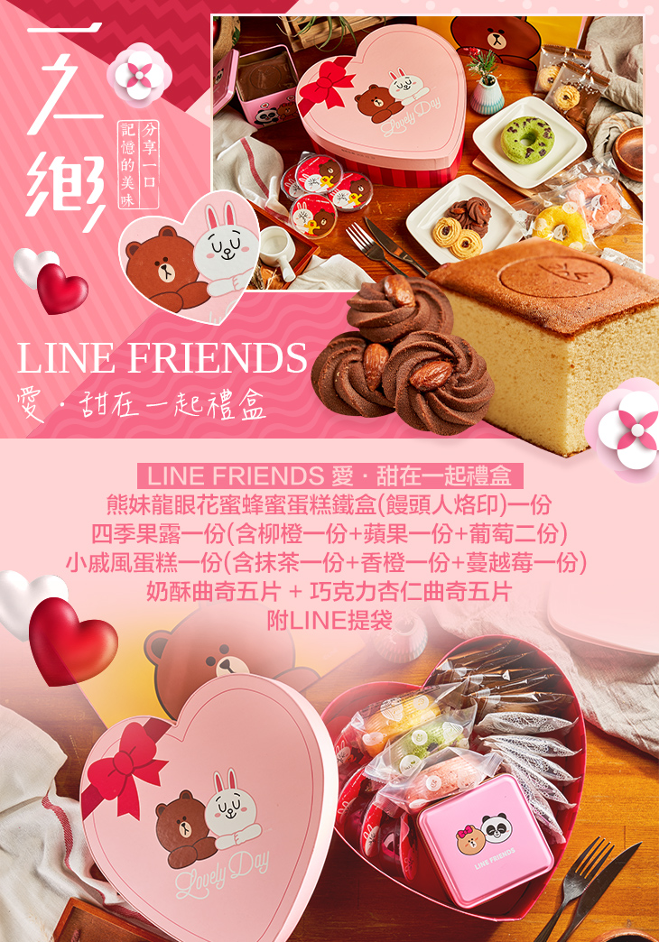 只要520!就將滿滿的愛與溫暖透過精緻可愛的包裝禮盒送給您!情人節有想好要送什麼給最心愛的另一半了嗎?玫瑰花、金沙巧克力,還是【一之鄉】的LINE FRIENDS 愛‧甜在一起禮盒呢!?熊大與兔兔最愛在一起 ~ LINE系列最甜蜜的愛心禮盒設計,替您傳達心中滿滿的感謝與愛給最重要的另一半 ~ 趕緊手刀購入,買來送給心目中的摯愛喲 ~ 啊!對了!不一定要給情人,也可以分享給您最親密的家人或最要好的朋友喲 ~