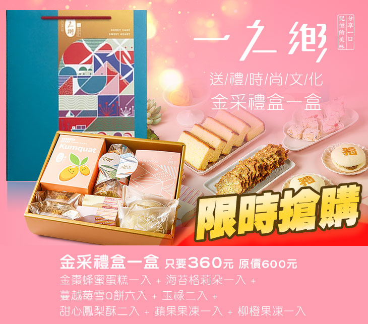 台灣起家,歷經四十餘年的【一之鄉】,四十餘年間一直堅持著「原食精神」,產品裡絕對不添加防腐劑,並精心挑選本土好食材用心製作,如【一之鄉】的招牌──蜂蜜蛋糕,便是採用頂級的龍眼花蜜、天然海藻糖以及每日新鮮直送的優質雞蛋,透過老師傅巧手,以費工費時的「細火烘焙製法」製作,自創立以來已熱賣超過四十萬條,成功征服許多人的味蕾!這雋永典藏的蜜香好味,絕對要入手品嚐!