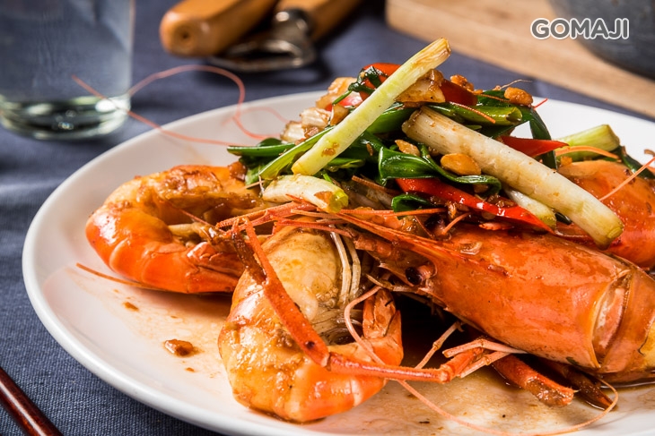 肥碩蝦隻肉質多汁鮮美又彈牙,加上鹹香開胃的蔥爆調味點綴,讓人迫不及待的剝皮去殼,一隻接一隻!