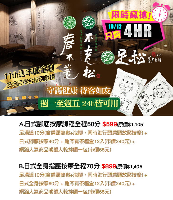 ─ 手舞足道集團品牌聯合活動 春不荖足湯養身行館、不老松足湯養身行館、足松養身會館、JIN SUN 勁桑の元気保養所 ─