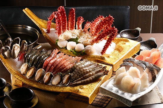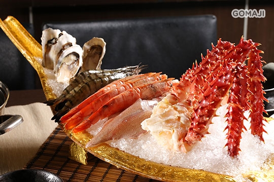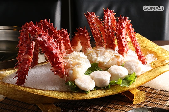 帝王蟹半隻(約600~700克) + 天使紅蝦三尾 + 頂級大草蝦三尾 + 透抽一尾 + 日本大生蠔四顆