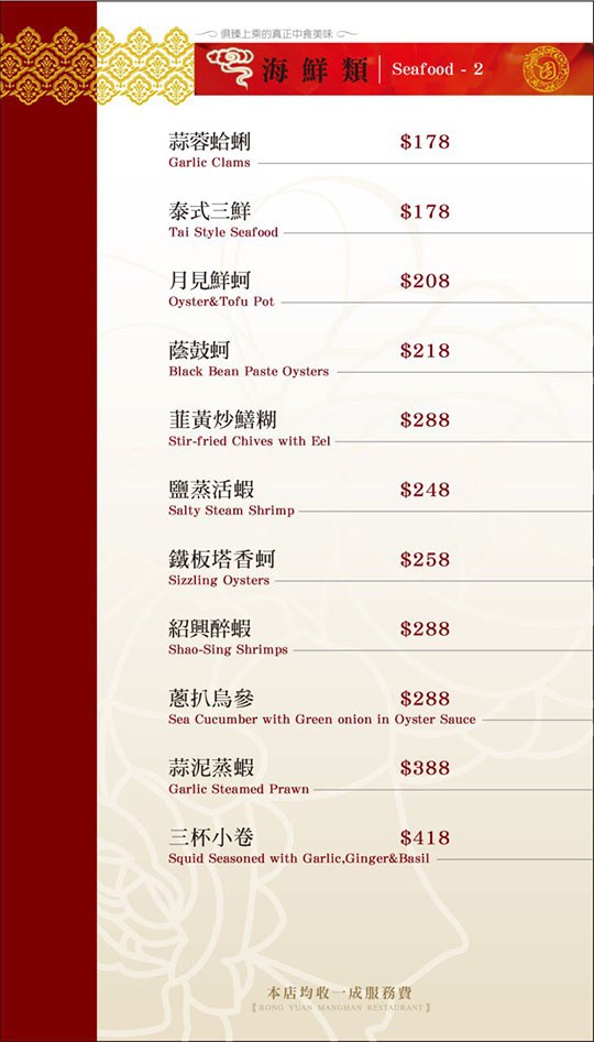 ※ 菜色內容依季節時令調整,實際菜色、價目依現場提供為主。