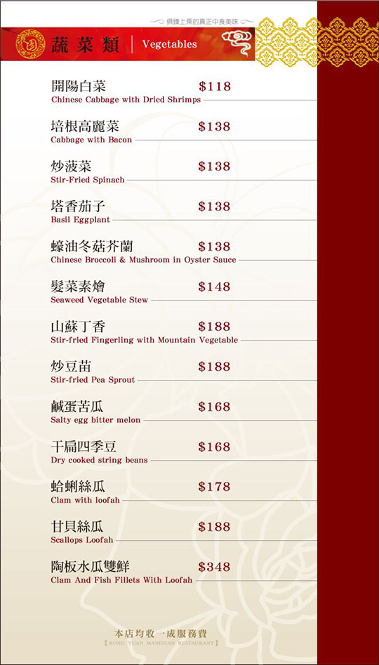 ※ 菜色內容依季節時令調整,實際菜色、價目依現場提供為主。