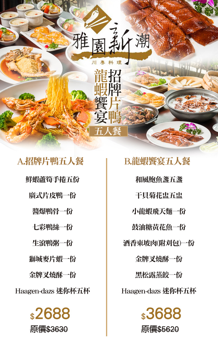 A.招牌片鴨五人餐