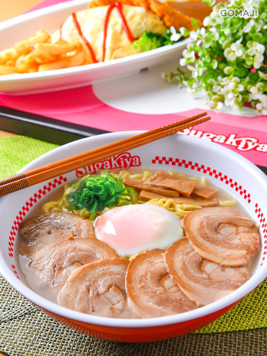 壽賀喜屋人氣商品,獨家醃製五花叉燒肉、香嫩滑口的溫泉蛋;將溫泉蛋戳破讓麵條、叉燒肉沾附蛋液,一口吃下是老饕才懂得經典美味。